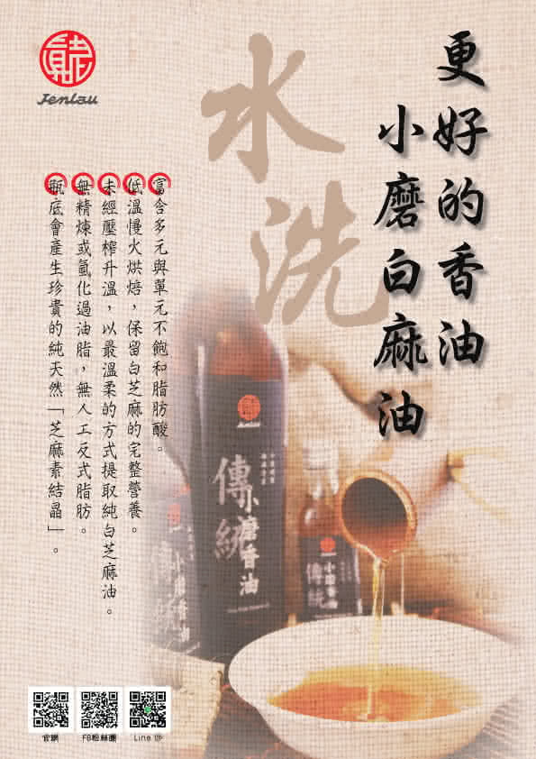 100% 純芝麻油 傳統低溫水洗製作口味清香,營養豐富適合涼拌,燉補,清炒 |