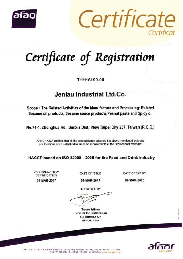 「真老麻油」榮獲ISO22000&HACCP食品安全雙認證